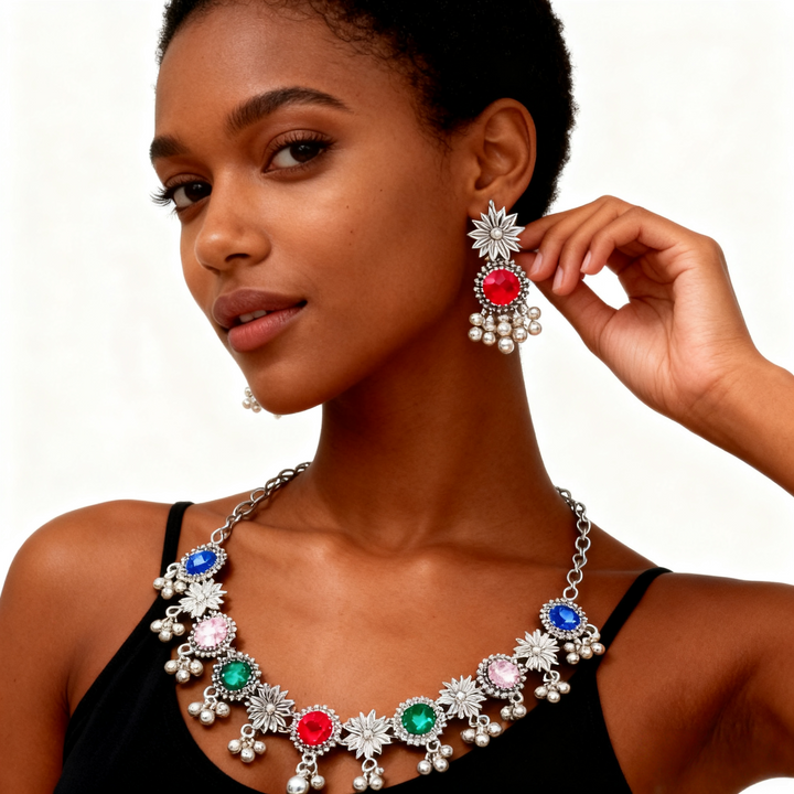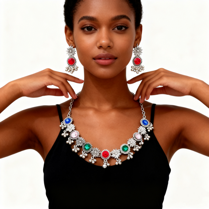the 925 Silver Multicolor Agate Necklace & Earring Set celebrates the harmony of color and craftsmanship.