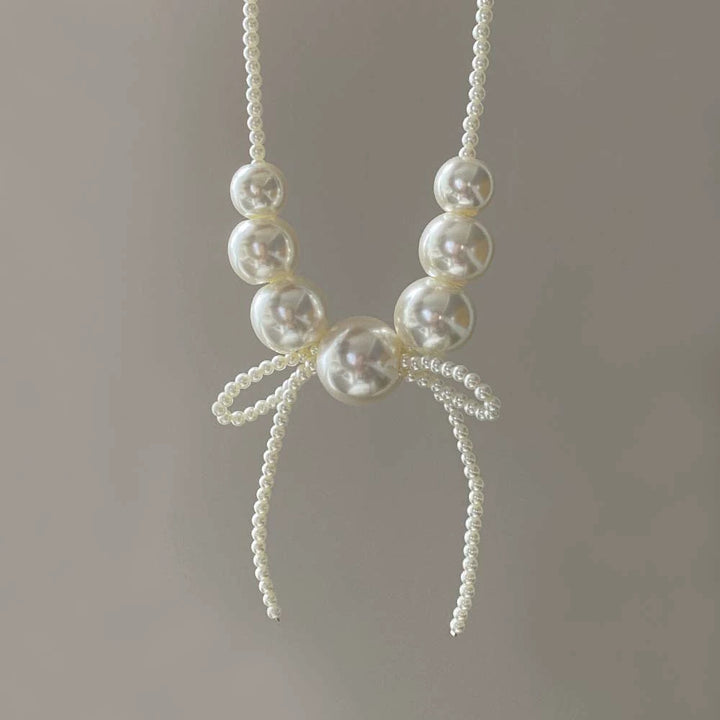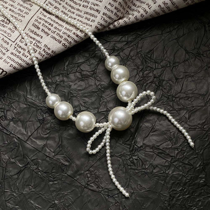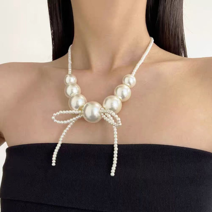 Elevate your accessory collection with the Big Round Pearl Bow Necklace, expertly crafted to combine classic elegance with a modern statement. Featuring lustrous, oversized round pearls arranged to form a delicate bow, this necklace adds a refined touch to both formal and casual ensembles. Its sophisticated design highlights timeless beauty while offering versatility for various occasions. Perfect for those who appreciate meticulous craftsmanship and distinctive style.