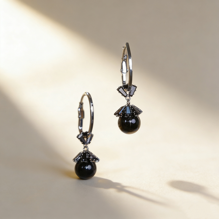 A refined pair of earrings featuring elegant black pearls, offering a mysterious, lustrous sheen that adds depth and sophistication to any look. Crafted in 925 sterling silver with black plating, these earrings blend modern minimalism with timeless elegance—perfect for elevating daily outfits, gifting someone special, or adding a touch of charm to dates, work, and special occasions.