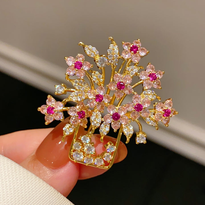Flowers fade, but this brooch is forever—a blooming bouquet of crystals,set in a golden vase that never loses its shine.Each crystal is cut to catch the light like a fresh petal,each gold detail crafted to mimic the delicacy of real blooms.Wear it to elevate evening gowns, to add charm to work blouses, or to gift a piece of everlasting beauty—this brooch isn’t just an accessory; it’s a masterpiece.