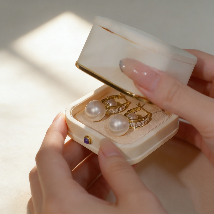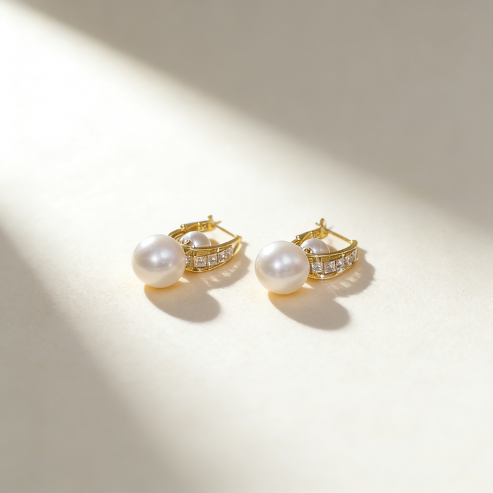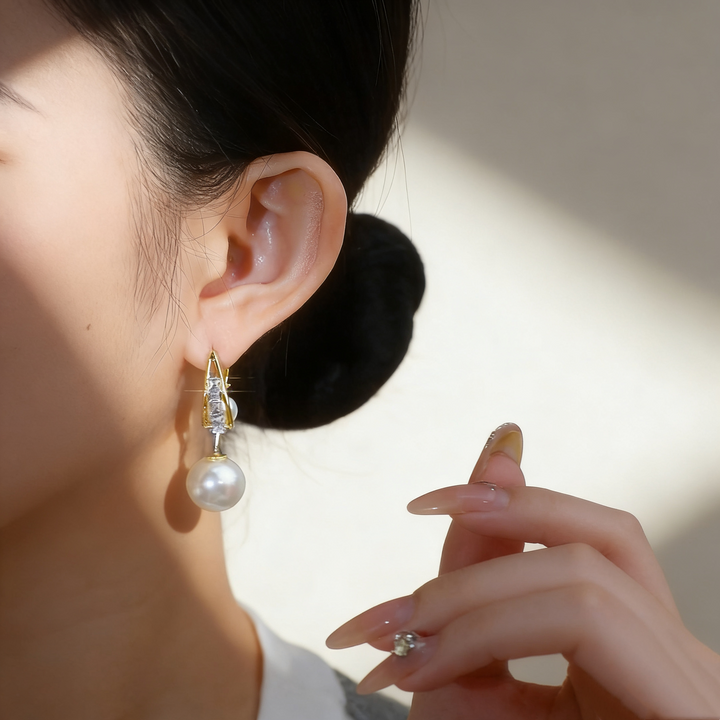 A classic and elegant pair of earrings featuring a large pearl as the main stone paired with a smaller pearl, delicately accented with Cubic Zirconia (Simulated Diamond) for added sparkle. Crafted in S925 silver with 18K gold plating, these earrings offer timeless charm, perfect for elevating daily outfits, gifting, or adding sophistication to special occasions such as dates, work, or formal events.