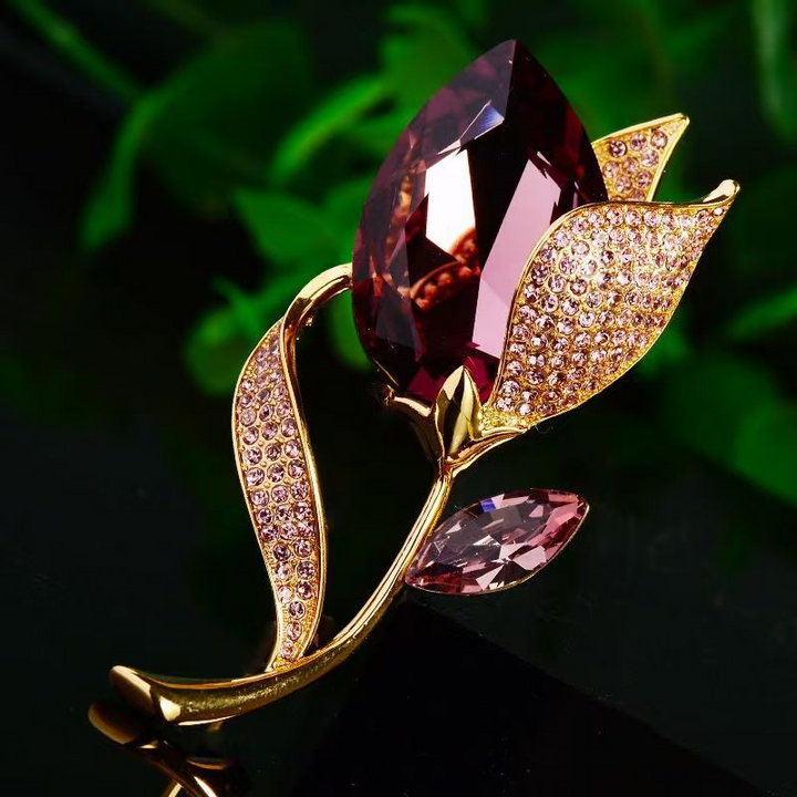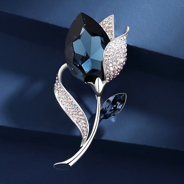 This full diamond tulip brooch showcases expert craftsmanship with meticulously set diamonds that capture light from every angle. Its elegant tulip design adds a refined touch to any outfit, making it a timeless accessory for collectors and connoisseurs. Perfect for those who appreciate detailed artistry and luxurious sparkle in a subtle yet distinctive form.