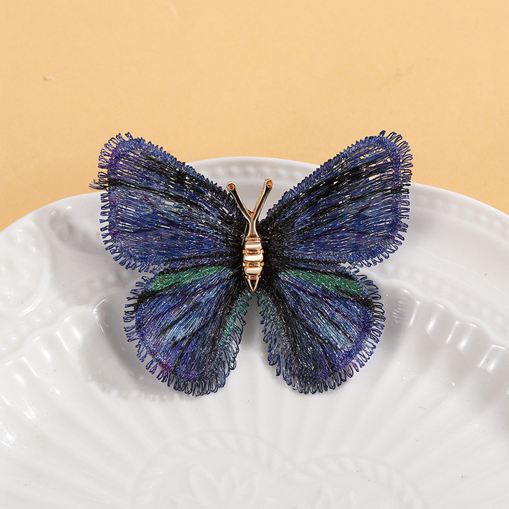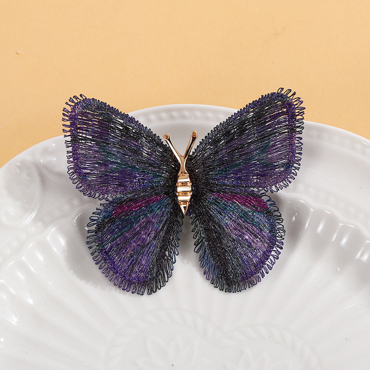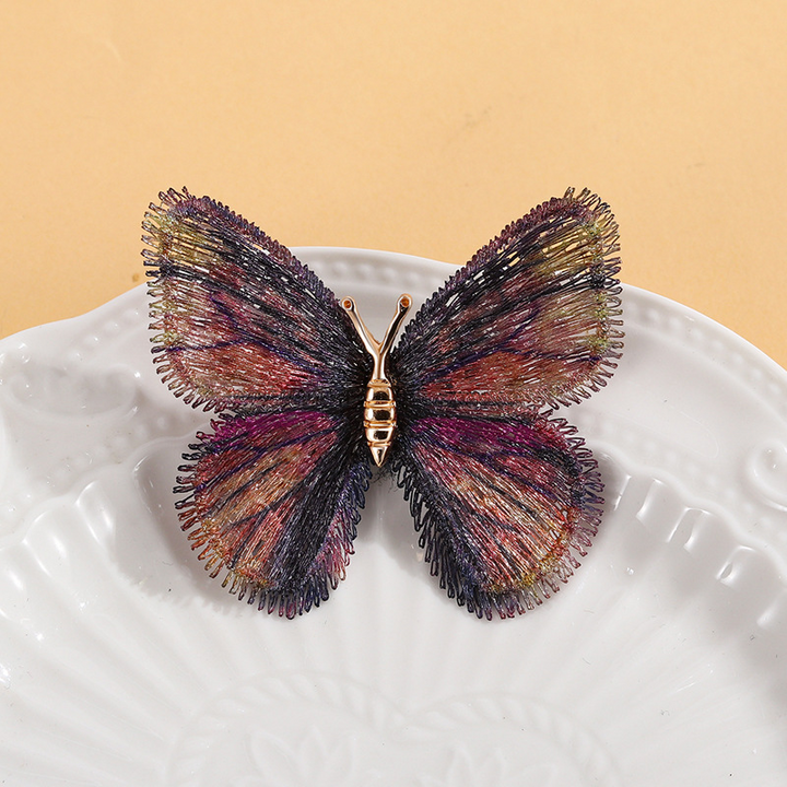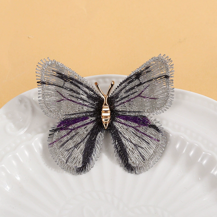 This gradient embroidered butterfly brooch showcases meticulous craftsmanship with delicate threadwork that gradually shifts in color, creating a lifelike and elegant design. Perfect for adding a refined touch to any outfit, this accessory combines artisanal embroidery techniques with a timeless motif, making it an expert choice to elevate your style with subtle sophistication.