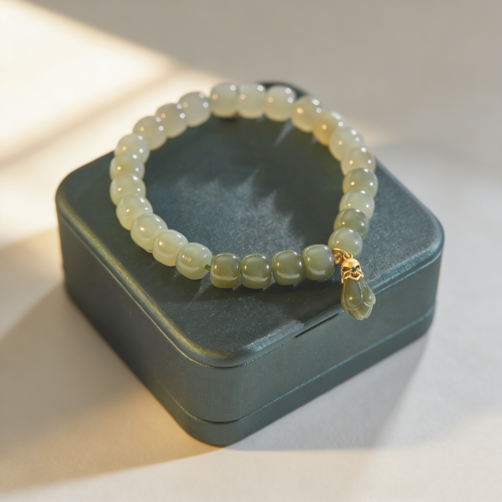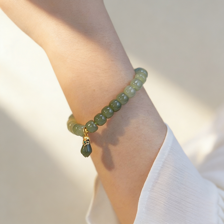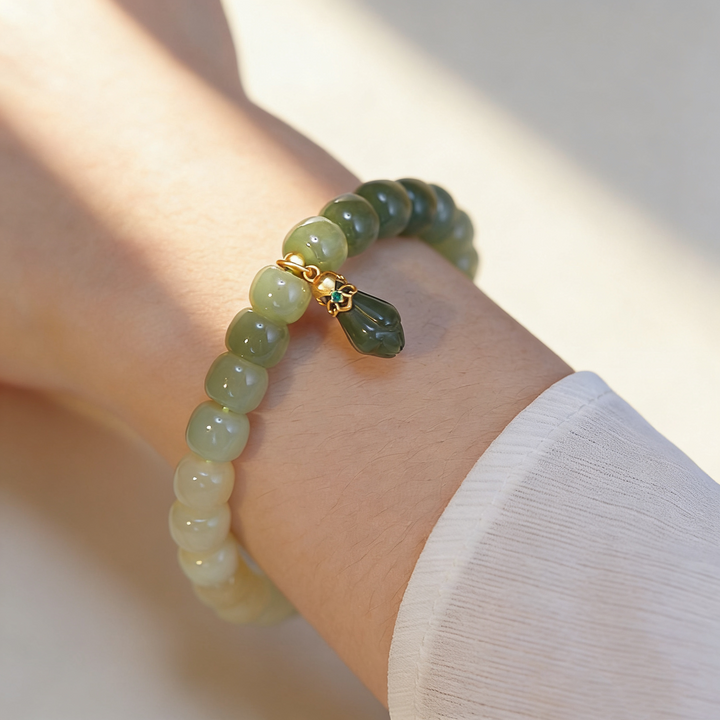 A delicate magnolia-inspired bracelet crafted from gradient jade beads, each approximately 8×9mm, weighing around 33g. Made from high-quality jade, this bracelet combines natural elegance with a gentle floral charm—perfect for daily wear, gifting, or special occasions.