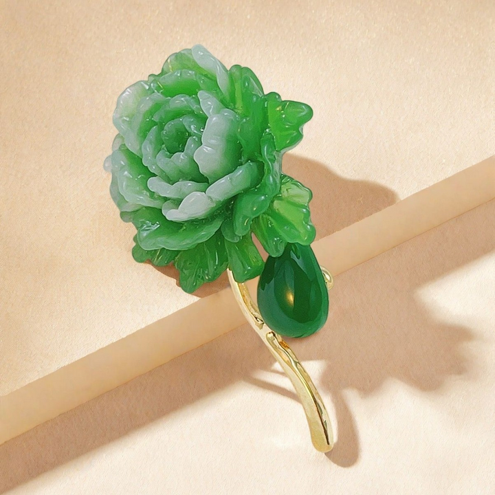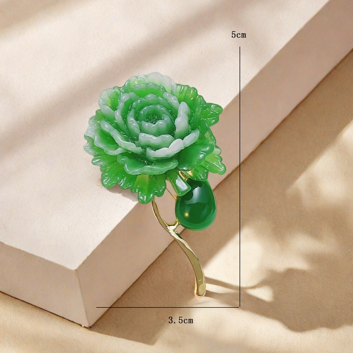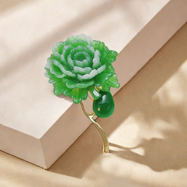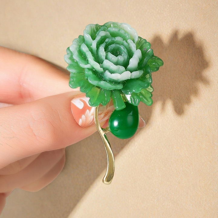 This elegant green peony brooch showcases exquisite craftsmanship with delicate petal detailing that captures the natural beauty of the flower. Its rich green tones add a sophisticated touch to any outfit, making it a refined accessory for formal occasions or everyday elegance. Lightweight yet durable, this brooch is designed for comfortable, lasting wear while enhancing your wardrobe with a unique botanical charm.