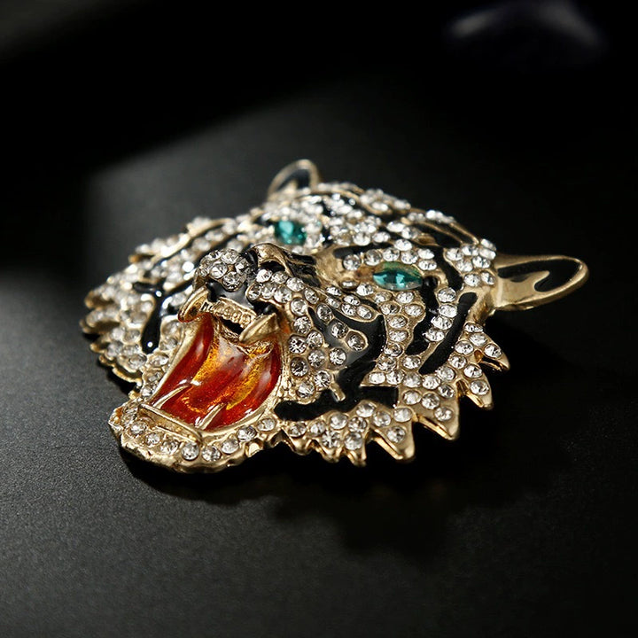 This light luxury tiger head brooch, adorned with finely crafted diamond accents, captures both elegance and boldness. Its intricate design highlights the fierce beauty of the tiger while the subtle diamond studs add a touch of refined brilliance. Perfect for amplifying a sophisticated look, this brooch serves as a statement accessory that combines artistry with luxurious detail.