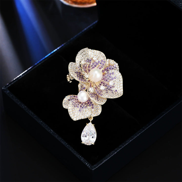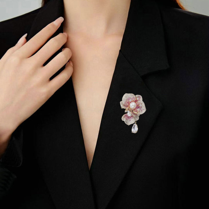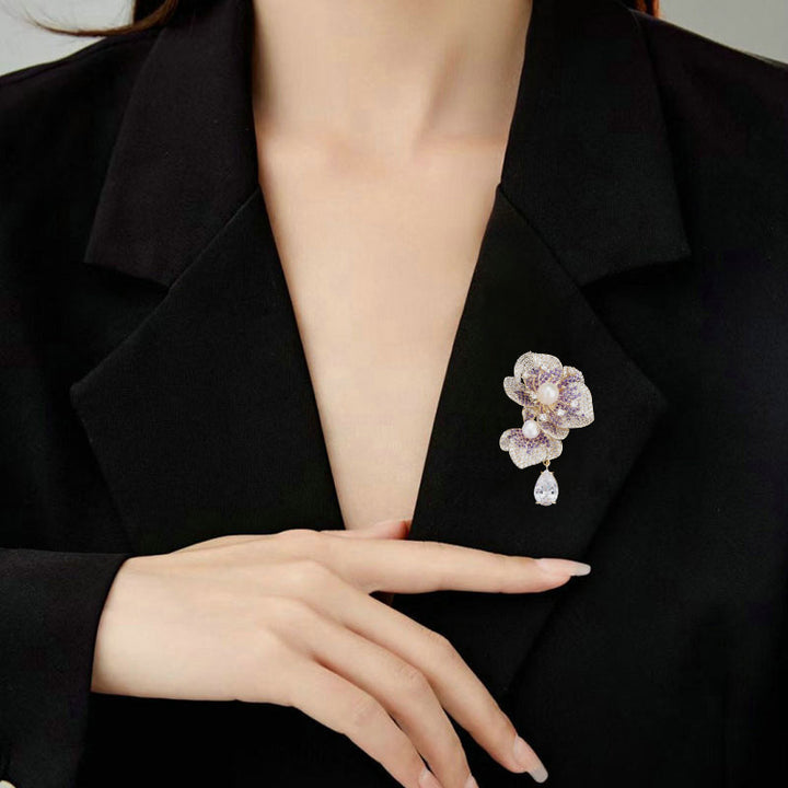 Elevate your accessory collection with the Light Luxury Zircon Camellia Brooch. Featuring finely crafted camellia petals adorned with sparkling zircon stones, this brooch combines refined elegance with subtle shimmer. Its lightweight design ensures comfortable wear while adding a sophisticated touch to any outfit, making it ideal for both formal occasions and everyday style enhancements.