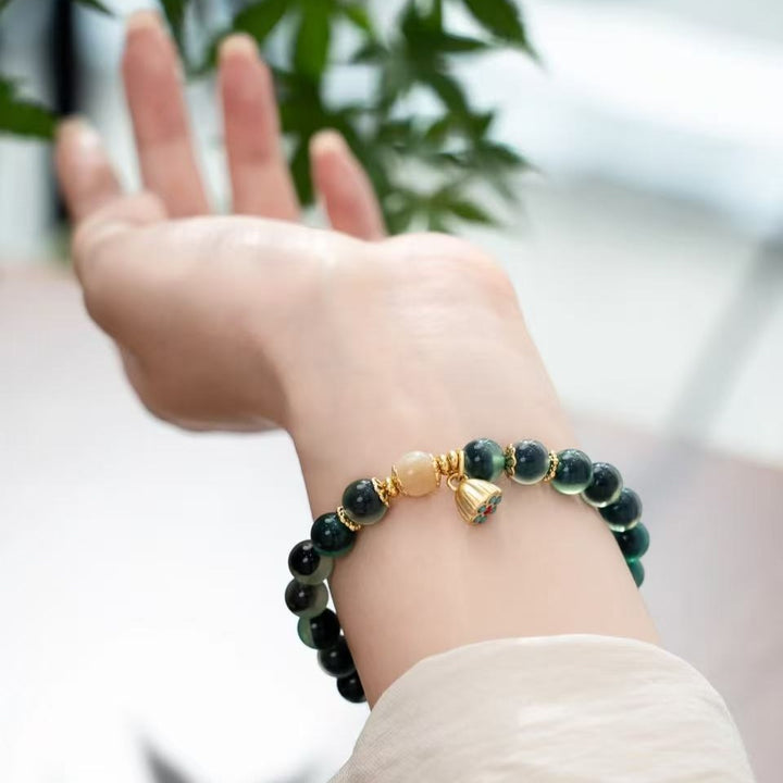 The lotus symbolizes purity and beauty, while agate has long been considered an auspicious stone, symbolizing peace and energy. The Good Luck Lotus Agate Bracelet, combining the lotus with natural agate, embodies the elegance and purity of the lotus and the gentle protection of agate, symbolizing peace, health, and good fortune. Wearing it is more than just a piece of jewelry; it is a personal blessing and protection.