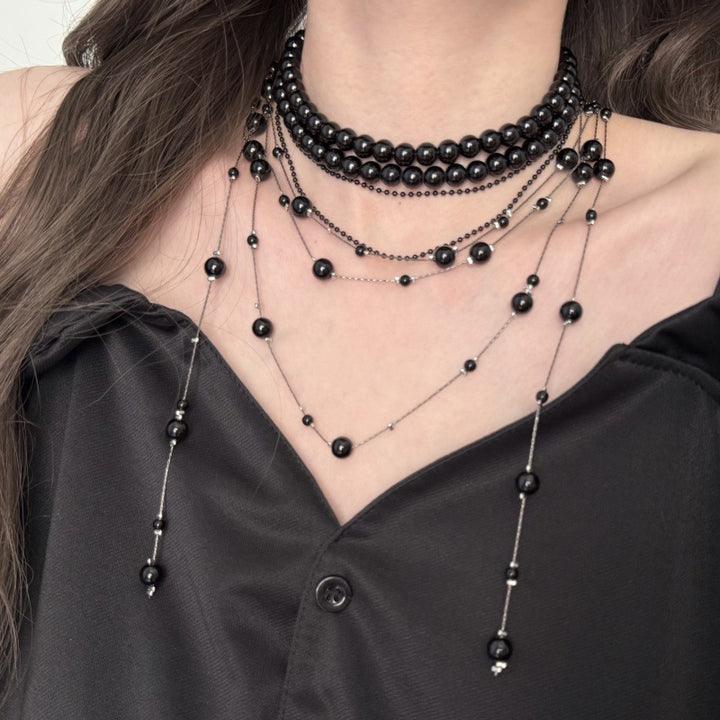 This Multi-layered natural freshwater pearl tassel necklace is a statement piece that exudes elegance and sophistication. The strands of lustrous pearls and the delicate tassel create a luxurious and timeless look. Perfect for adding a touch of glamour to any ensemble.
