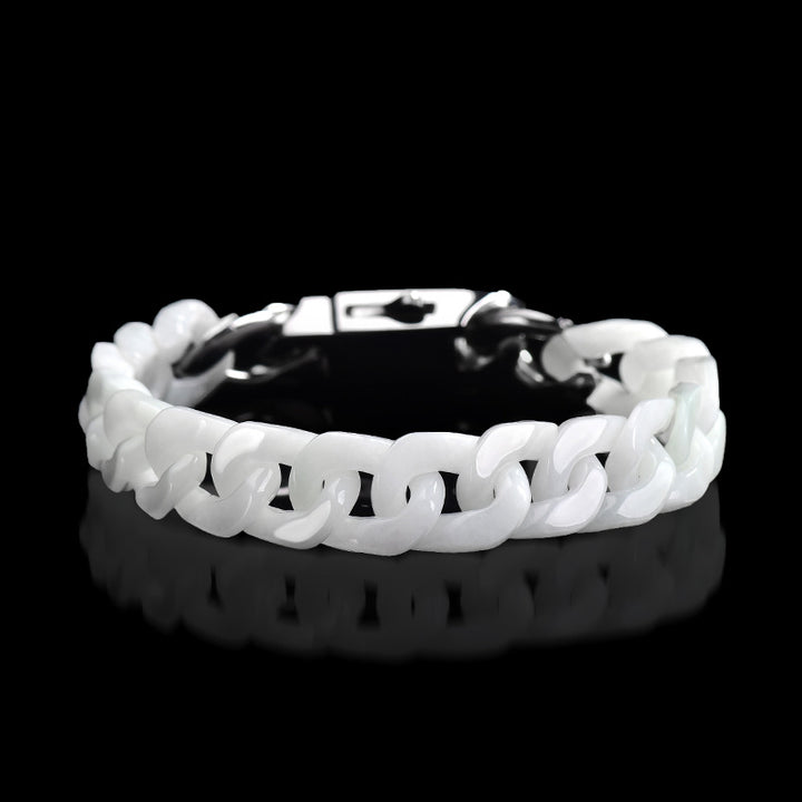Blending the strength of a Cuban chain with the gentle beauty of natural emerald jade, this bracelet symbolizes the perfect harmony of power and balance. Jade represents peace and longevity, while the chain stands for stability and confidence. Wear it as a statement of style and inner strength.
