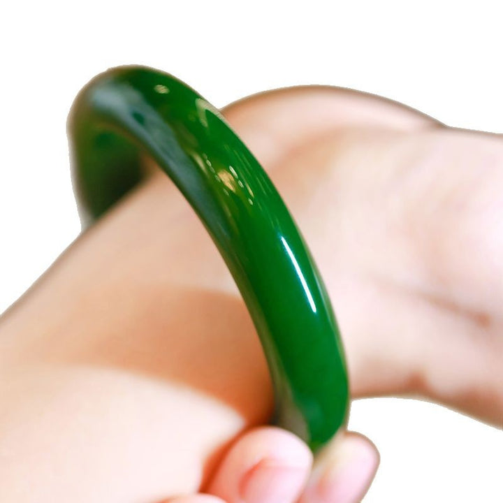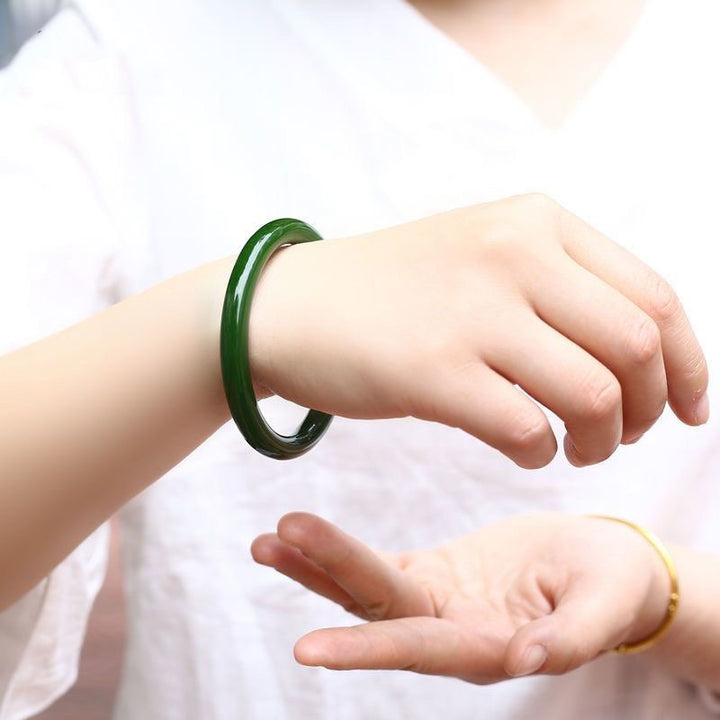 Experience the ancient healing powers of our Natural Emerald Jade Stone flat bracelet. Made from 100% natural emerald jade stone, this bracelet is believed to boost energy, promote harmony and balance, and bring good luck and fortune. Elevate your well-being with this exquisite accessory.