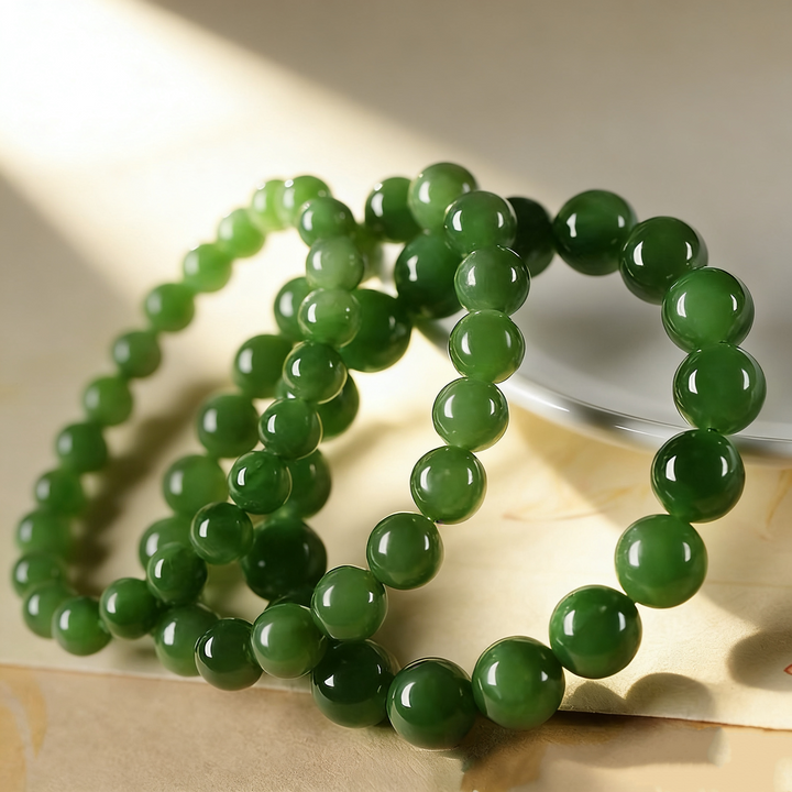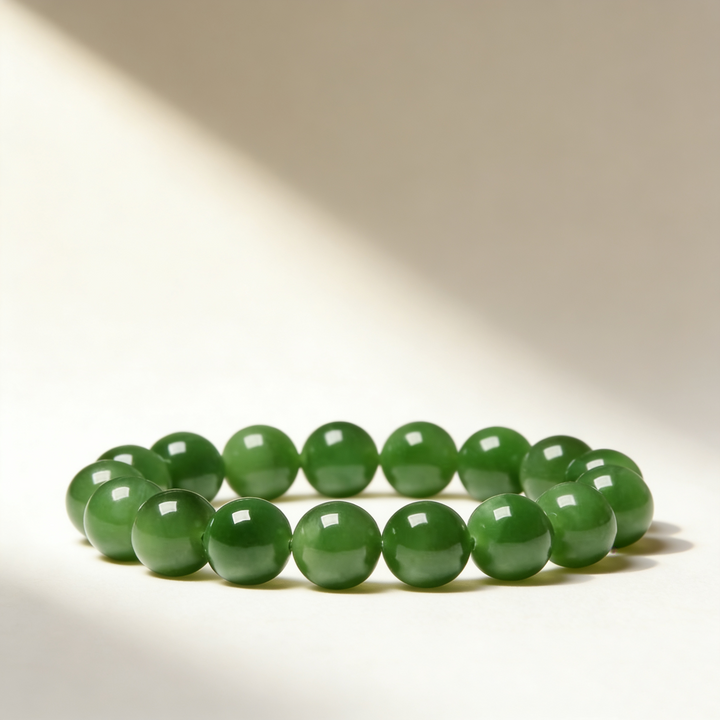 A beautifully crafted bracelet made from natural Russian jade, known for its rich, soothing green color and smooth texture. Each bead is carefully polished to reveal the stone’s natural luster, offering an elegant, timeless accessory suitable for daily wear, gifting, or elevating your style for work, dates, or special events.