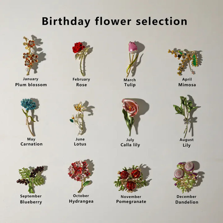 Celebrate the unique beauty of December with this personalized birth flower brooch. Expertly crafted to showcase December's symbolic bloom, it offers a refined accessory that carries personal meaning. Perfect for adding a subtle yet elegant touch to any outfit, this brooch serves as a timeless keepsake and thoughtful gift option.