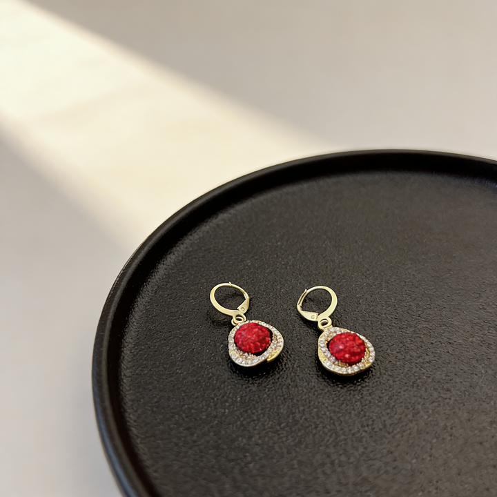 - Features: Wrapped hoop design, bold red centerpiece, brilliant shine, Hypoallergenic, lead and nickel free