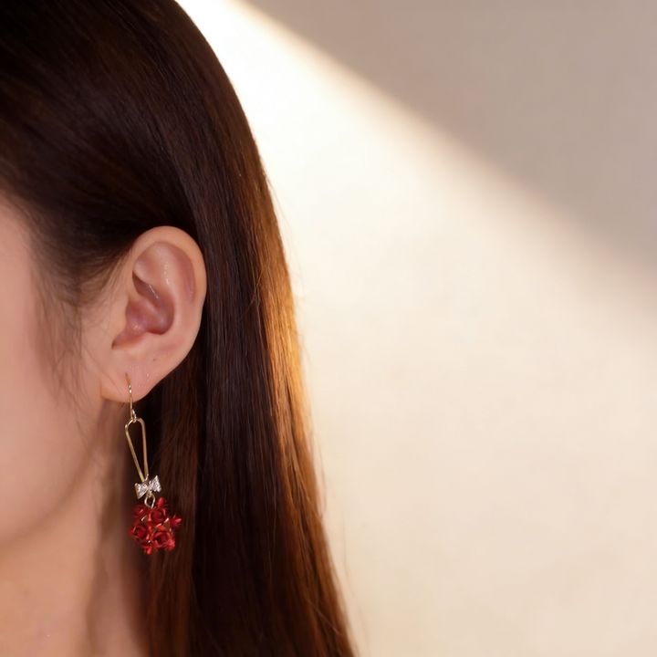 A charming pair of earrings featuring a bow design crafted entirely from Cubic Zirconia (Simulated Diamond), creating a sparkling and elegant look. Set in S925 silver with 18K gold plating, these earrings add a refined touch to daily outfits, gifting occasions, or special events such as dates, work, and parties.