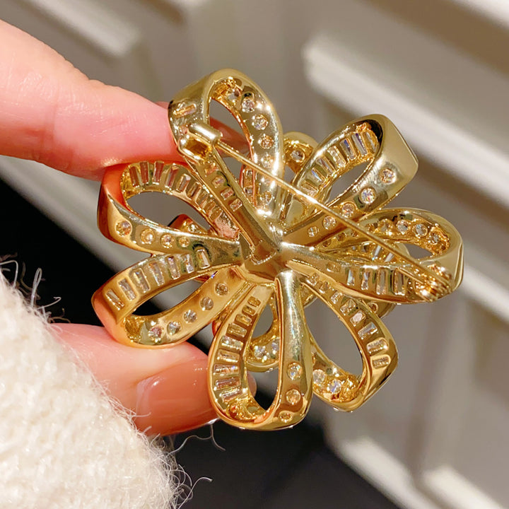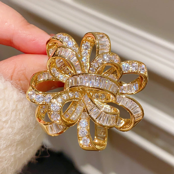 Elevate your ensemble with the Sparkling Micro-Inlaid Zirconia Ribbon Brooch, meticulously crafted to offer refined brilliance. Featuring a delicate ribbon design adorned with finely micro-inlaid zirconia stones, this brooch delivers subtle shimmer and sophisticated elegance. Ideal for accentuating formal attire or adding a polished touch to everyday wear, it balances artistry with durability, making it a versatile accessory for discerning collectors.