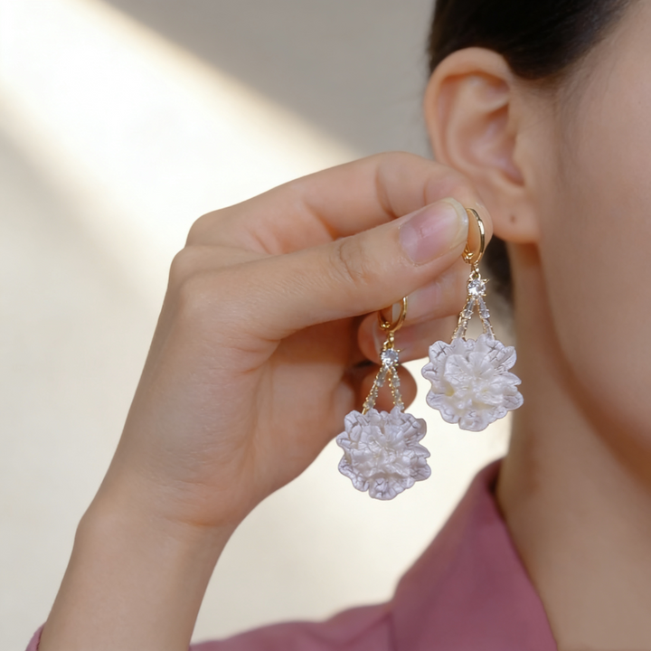 - Features: Camellia flower design, sparkling elegance, Hypoallergenic, lead and nickel free