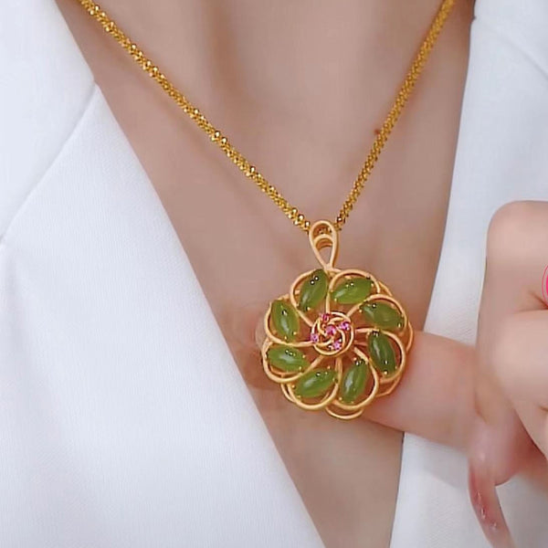Lucky Windmill • Natural Emerald Jade stone Necklace