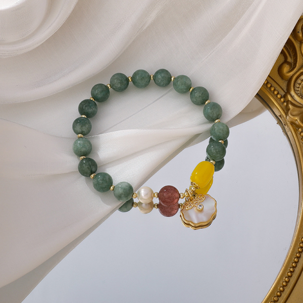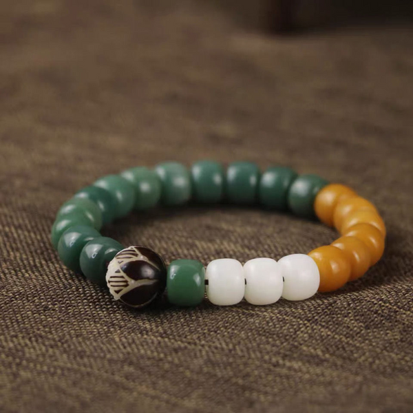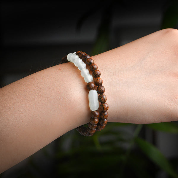 Sandalwood wood & Emerald Jade Stone Bracelet