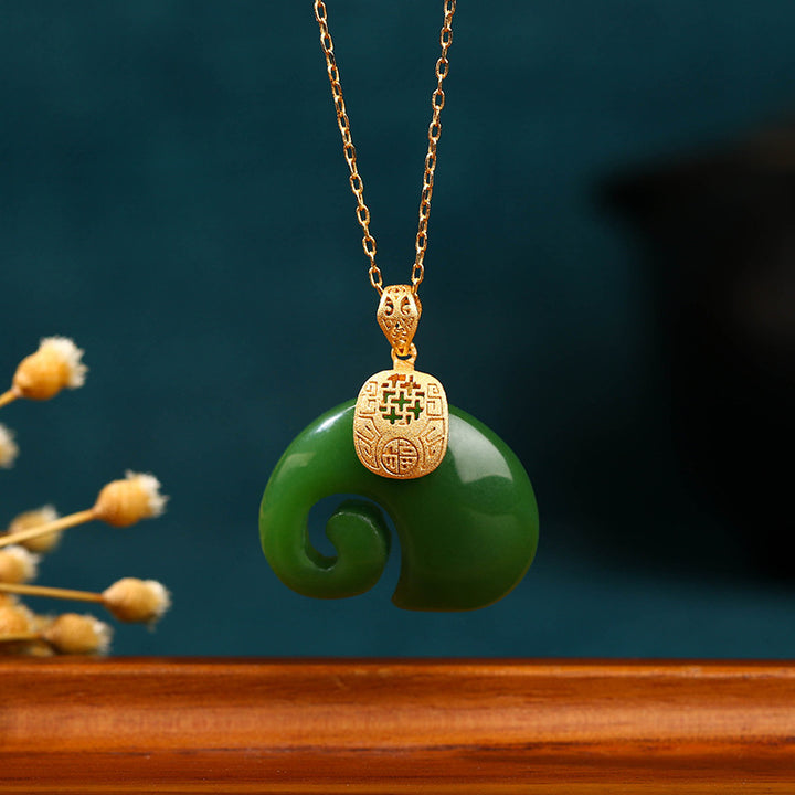 This Auspicious Elephant pendant necklace is crafted with premium-quality emerald jade stones. The elephant shape symbolizes strength, wisdom, and prosperity, making this necklace a perfect accessory for every occasion.