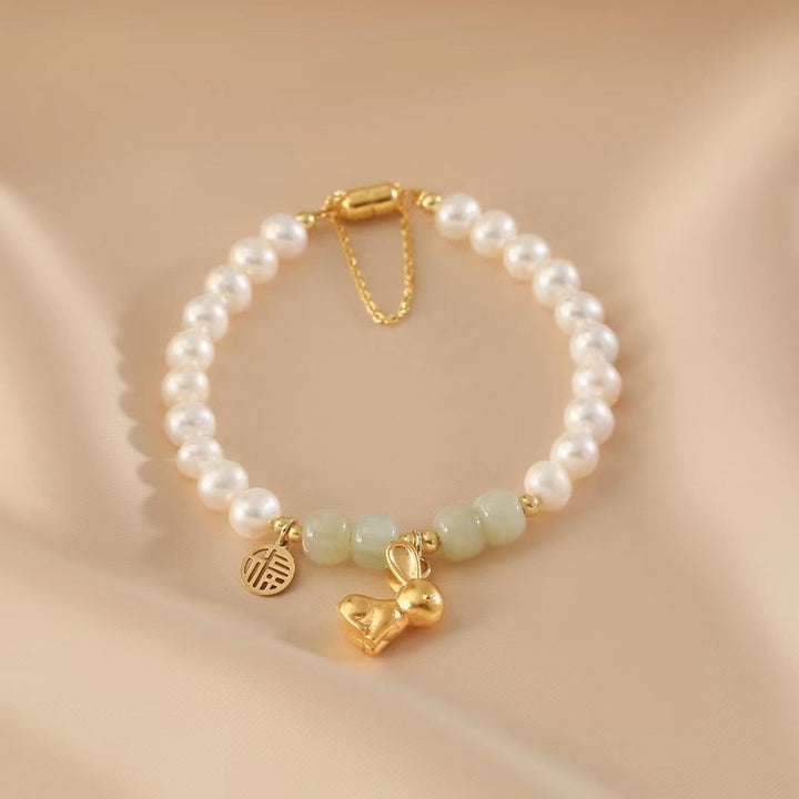 - Natural Emerald Jade stone. Freshwater Pearls