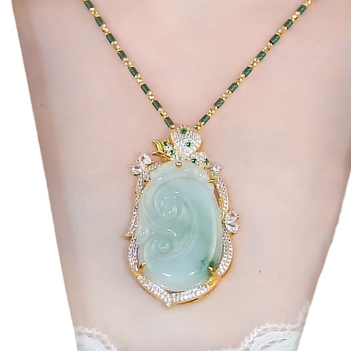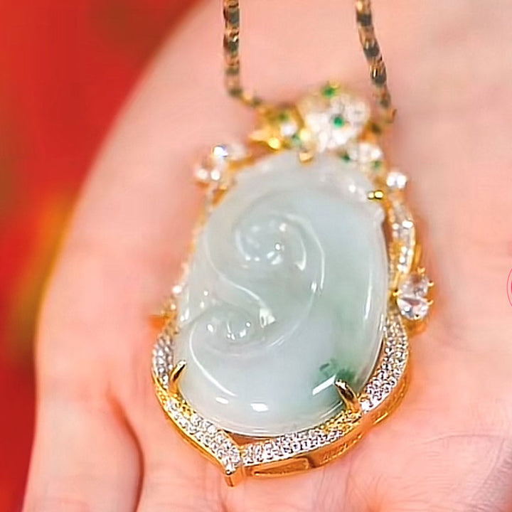 Unlock the power of good luck and fortune with this Auspicious Ruyi Jade Necklace. Crafted from natural jade, this piece boasts a beautiful color and texture, bringing refinement and style to any look. The ruyi design is a powerful symbol of good luck that helps create harmony and prosperity. Wear it and feel the blessings you bring to your life.