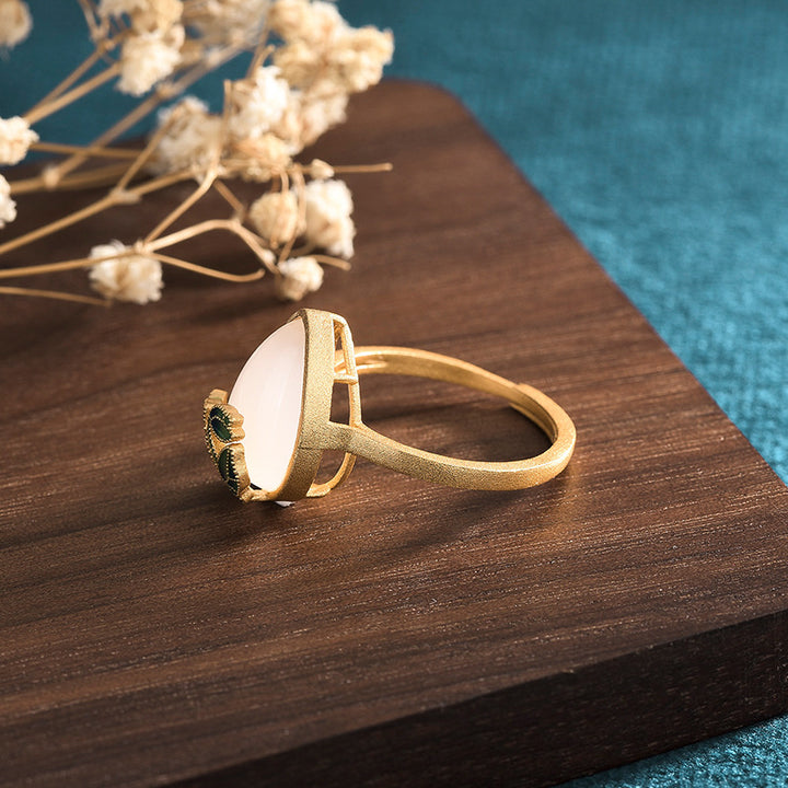 This Cyan Lotus Emerald Jade Stone Ring is handcrafted with a beautiful and eye-catching semi-precious jade stone. The nickel-free sterling silver construction offers durability and shine, while the bright, vibrant stone adds a luxurious burst of color to any outfit. Its unique design adds a touch of elegance that will be sure to turn heads.
