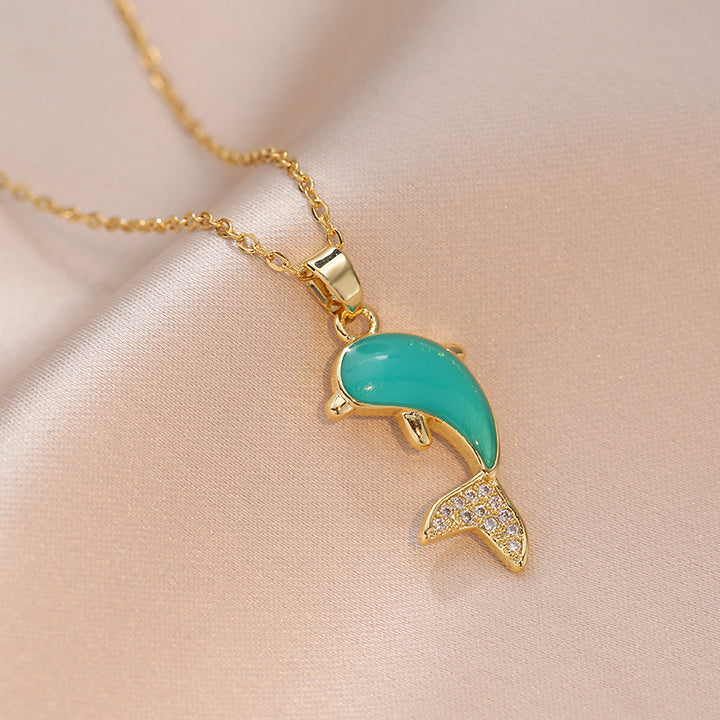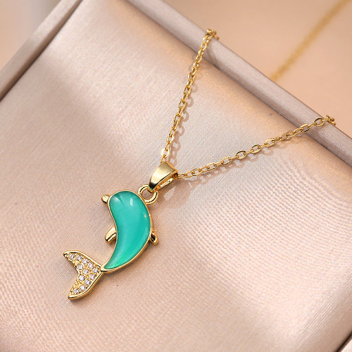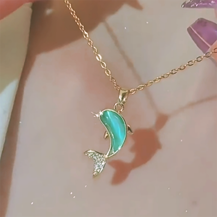 This Dolphin Cat's Eye Crystal Pendant Necklace is crafted from high quality materials for a stunning and enduring piece. The glimmering crystal catches the light and makes the perfect statement of style. Make a fashion-forward impression and show off your individual style with a beautiful crystal pendant.