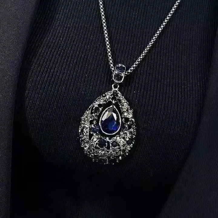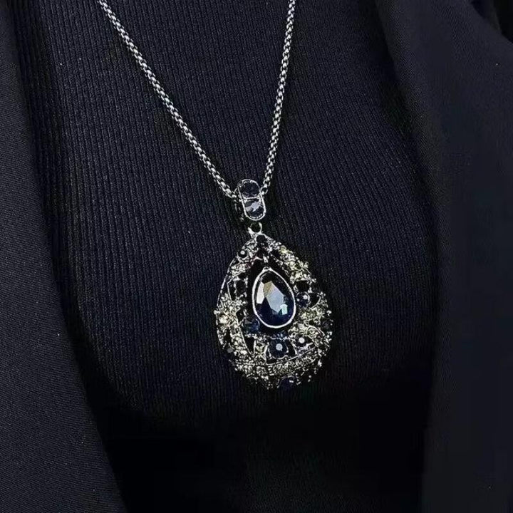 This drop-shaped natural blue zircon necklace is crafted with the utmost precision, utilizing a natural crystal zircon to create a stunning and unique piece of jewelry. The zircon has been cut into a drop shape to guarantee a sparkling, eye-catching effect.