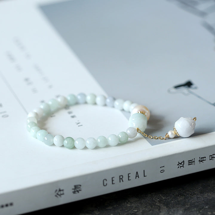 *The gemstones are light green to white in color.We carefully select each gemstone to offer gems with the best quality. As gemstones are natural materials, stone colors may vary slightly from the images, making this beautiful bracelet completely unique, just like you!
