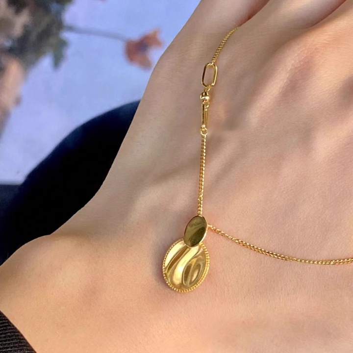 This beautiful women's golden years necklace is a timeless statement piece. Expertly crafted using 18K gold, it features an intricate and unique design that's sure to be remembered. Make every outfit shimmer with this stunning necklace.