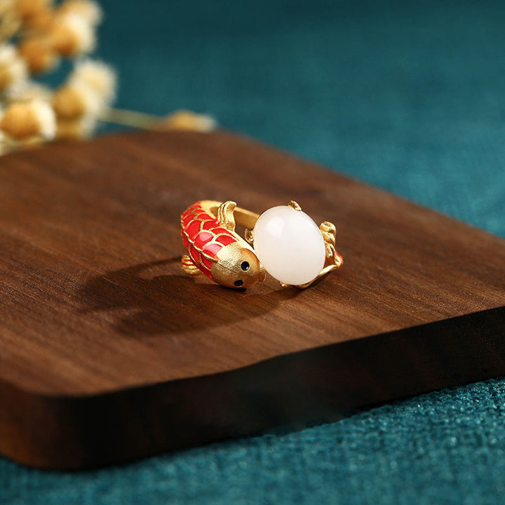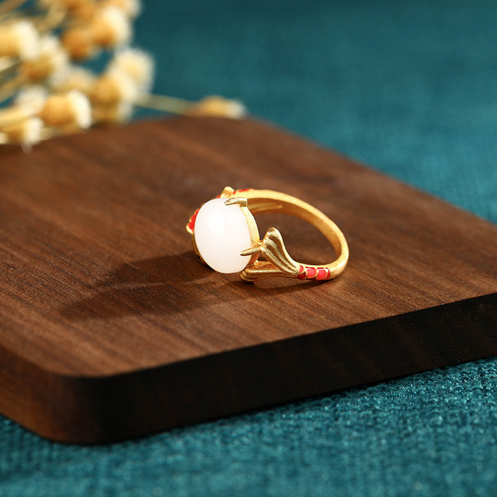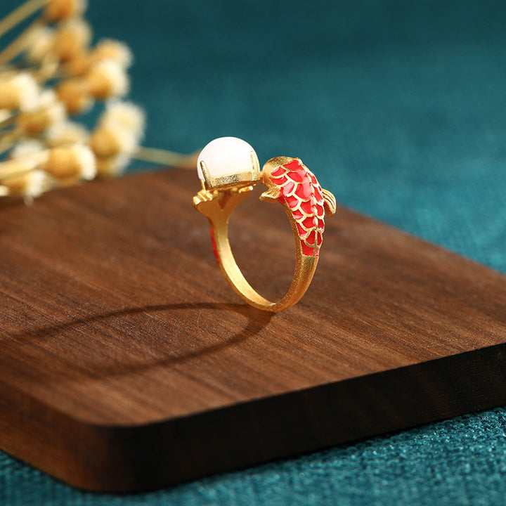The Good Luck Koi Emerald Jade Stone Ring is crafted with premium quality material for long-lasting durability. This timeless piece of jewelry features a unique emerald green jade stone that is believed to bring the wearer good luck and fortune. Give the perfect gift of luck and elegance with this beautiful ring.
