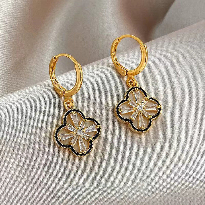 Show your luck with these beautiful four leaf clover earrings.Featuring an open leaf design showing off the delicate details of a four-leaf clover.Wear your luck around your ears!