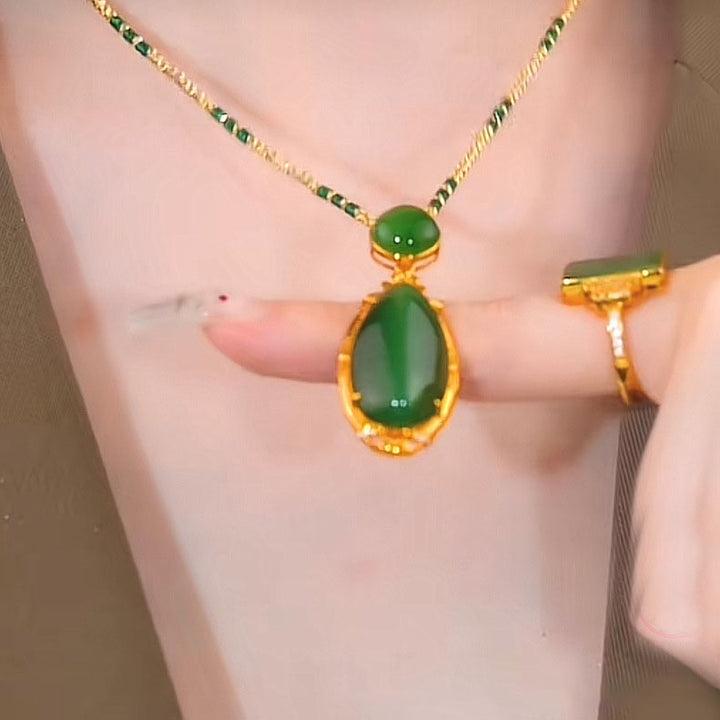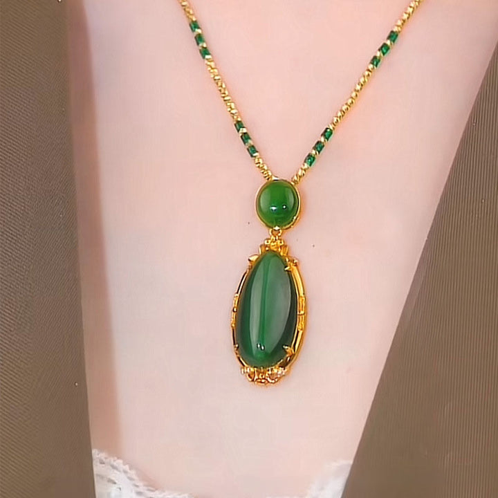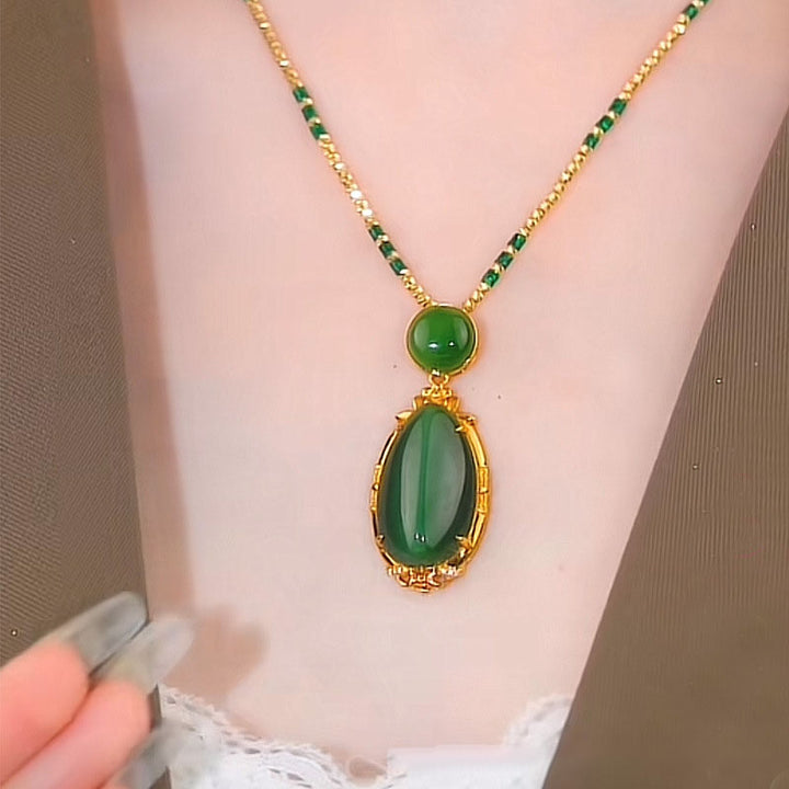 This beautiful Natural Emerald Jade Stone Necklace is the perfect way to make a fashion statement. Crafted by experts, the necklace is made from the finest quality natural emerald jade stone, making it a stunning and eye-catching accessory. The perfect accessory for any occasion, this necklace will bring out your inner beauty.