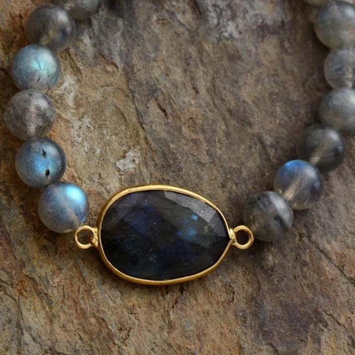 Labradorite is a beautiful gemstone that symbolizes transformation. The changing colors within the stone represent the journey we all take to discover who we truly are. When labradorite is worn, it is believed to invite positivity into the soul and enhance inner strength.