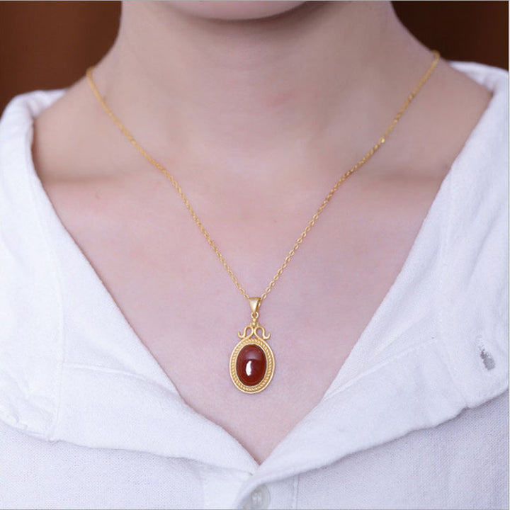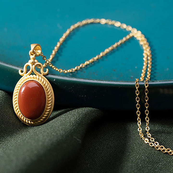This beautiful pendant necklace is crafted from natural southern red agate. Its bold color and glossy luster make for a luxurious statement piece. Wear it to add a touch of style and elegance to any ensemble.