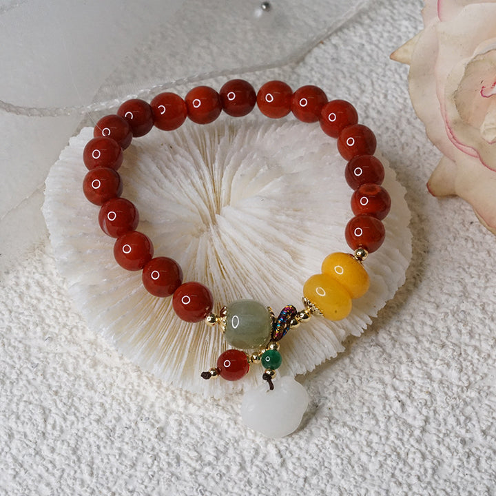 South Red agate can absorb the negative energy of the human body. South Red agate is also regarded as a longevity stone. Wearing South Red agate can strengthen Taoism and increase immeasurable merits.