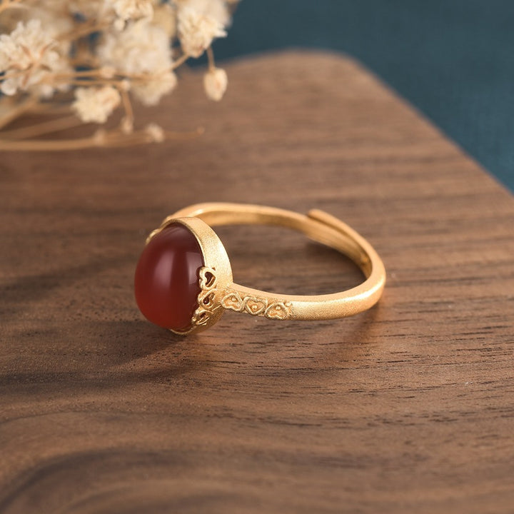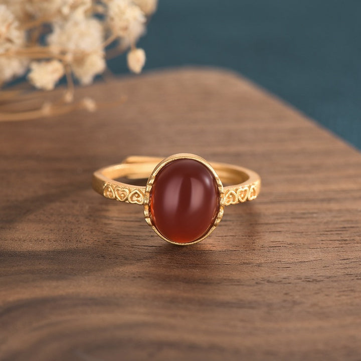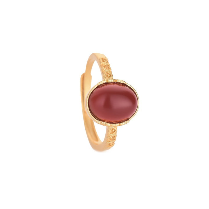 This beautiful vintage red natural agate chalcedony ring is the perfect addition to any collection. Crafted with the finest natural agate chalcedony, this ring is sure to make a statement. Its unique red hue makes it a one-of-a-kind.