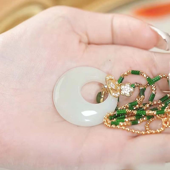 This stunning drop emerald jade stone pendant necklace is crafted with genuine jade. The carefully detailed design is sure to turn heads with its beautiful color and shine. The necklace is perfect for any special occasion, and is sure to add some timeless elegance.