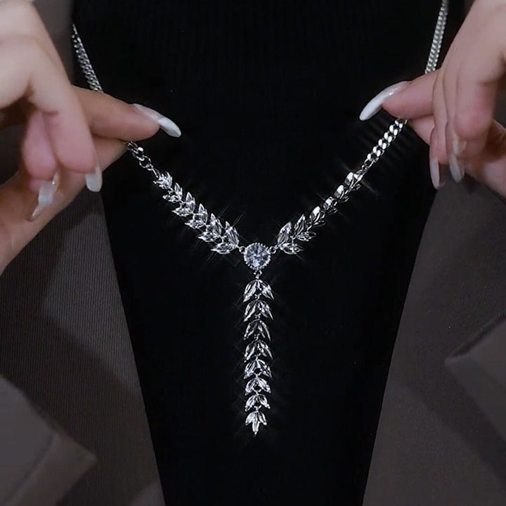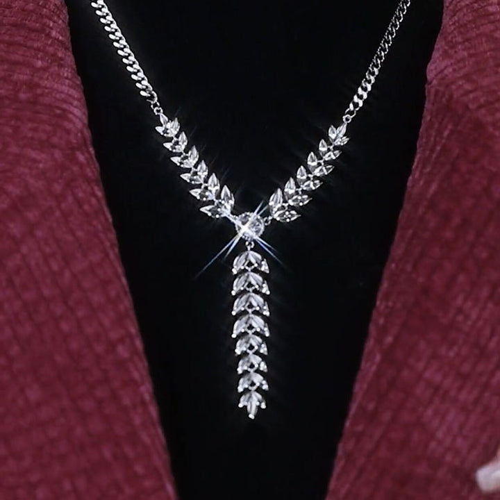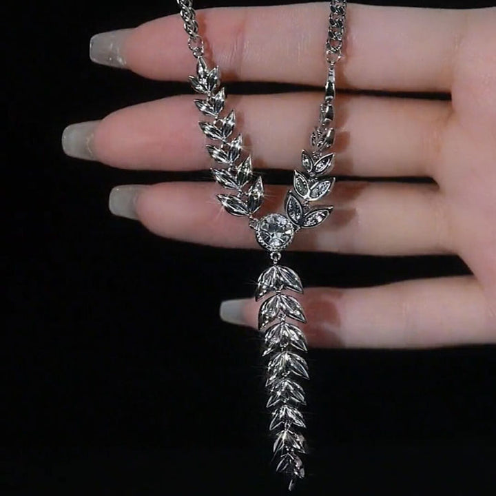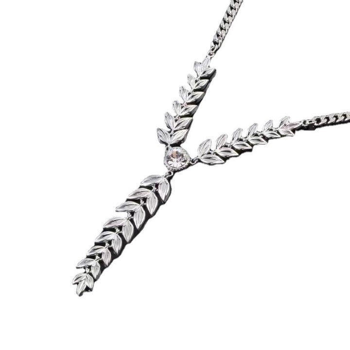 This Wheat Leaf Diamond Metal Necklace is expertly crafted from an alloy of hypoallergenic metals and features a delicate wheat leaf design with a shimmering diamond at its center. This necklace is perfect for any occasion and adds an air of sophistication to your look.